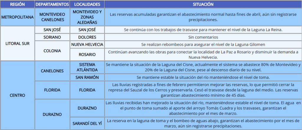 Como parte del monitoreo permanente que OSE realiza, se elabora un informe semanal de estado de situación de las fuentes de agua en aquellos lugares más afectados por el déficit hídrico.
