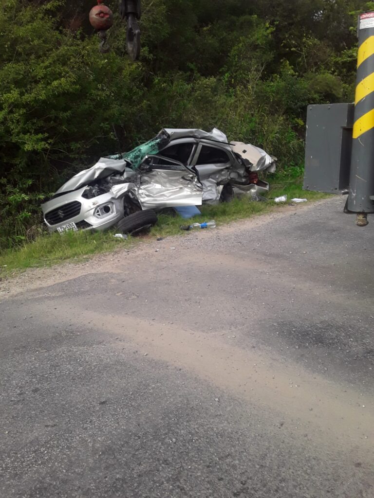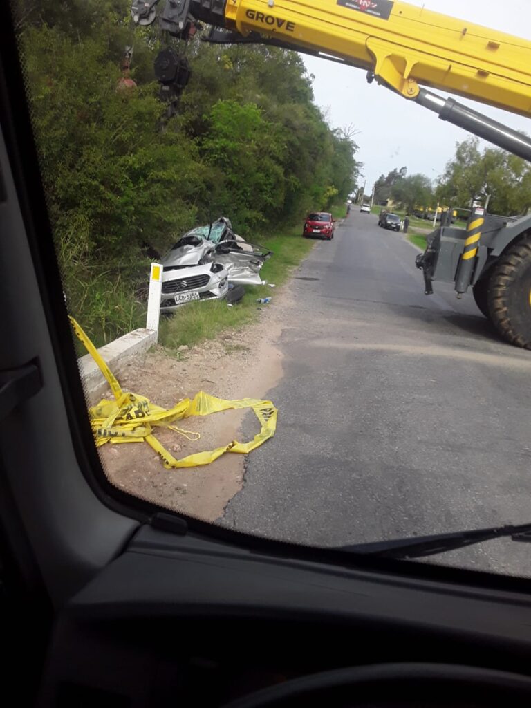 En la tarde de ayer se produjo un grave accidente en el ingreso oeste a La Paz C.P.. Por causas que se procuran establecer, colisionaron un auto Suzuki y una grúa.