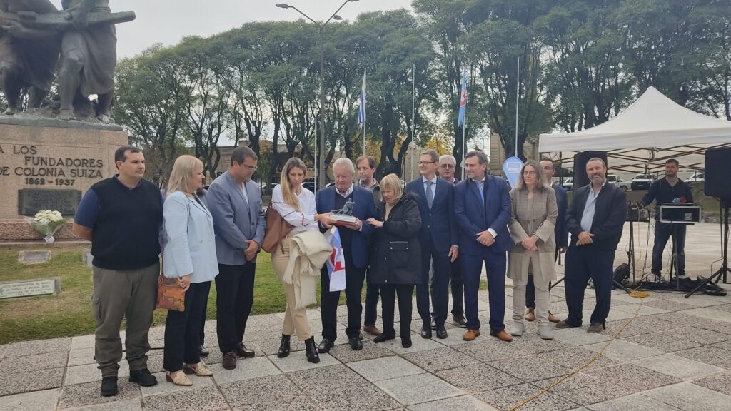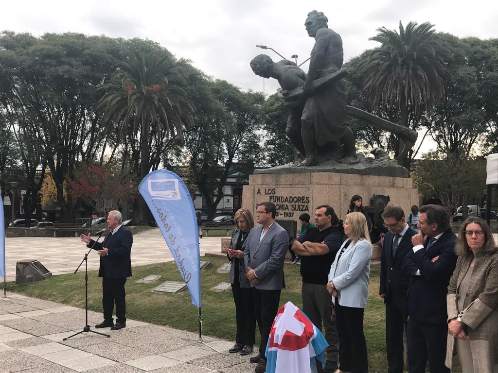 Hoy 25 de abril, se festejan los 161 años de la fundación de la colonia suiza Nueva Helvecia, y por ello, desde las 11:00 de la mañana, se realizó el acto en conmemoración en la Plaza de Los Fundadores, a los pies del Monumento Al Surco.