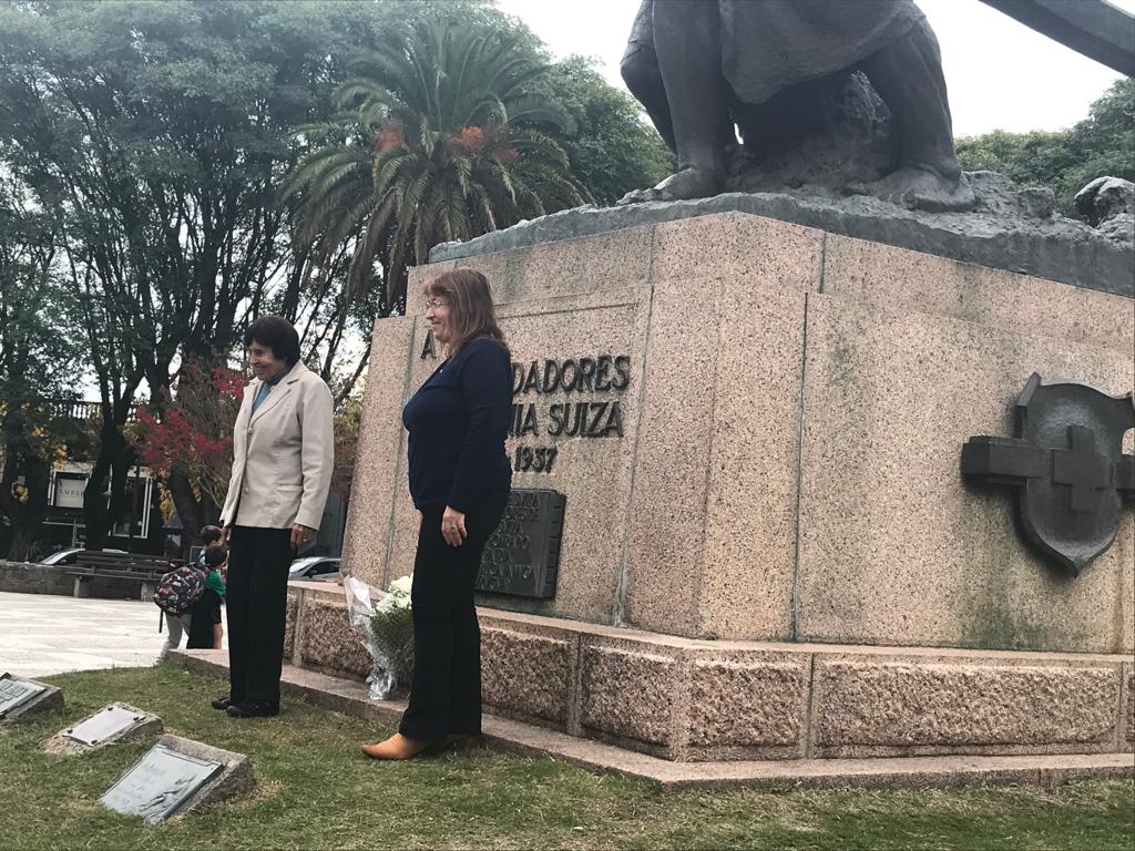 Posteriormente María Bentancor y Nélida Beltrán, en nombre de Fuerzas Vivas realizaron una ofrenda floral al mencionado monumento, y el grupo de tiradores de la Sociedad Tiro Suizo dispararon salvas al aire.