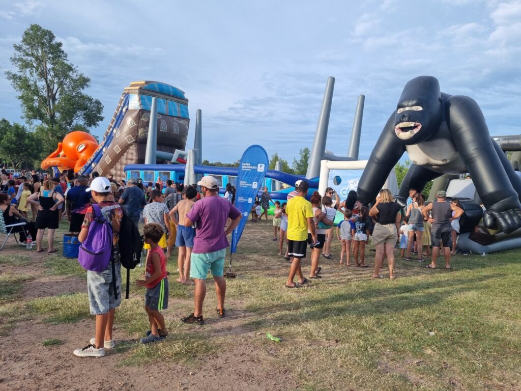 Juegos inflables gigantes para niños, feria artesanal y gastronómica, juegos de fútbol, vóleibol y básquet, y el cierre musical de Dr. Delay y Tropical Nowai, conformaron la programación de la primera actividad del escenario móvil de la Intendencia de Colonia por las playas del departamento.